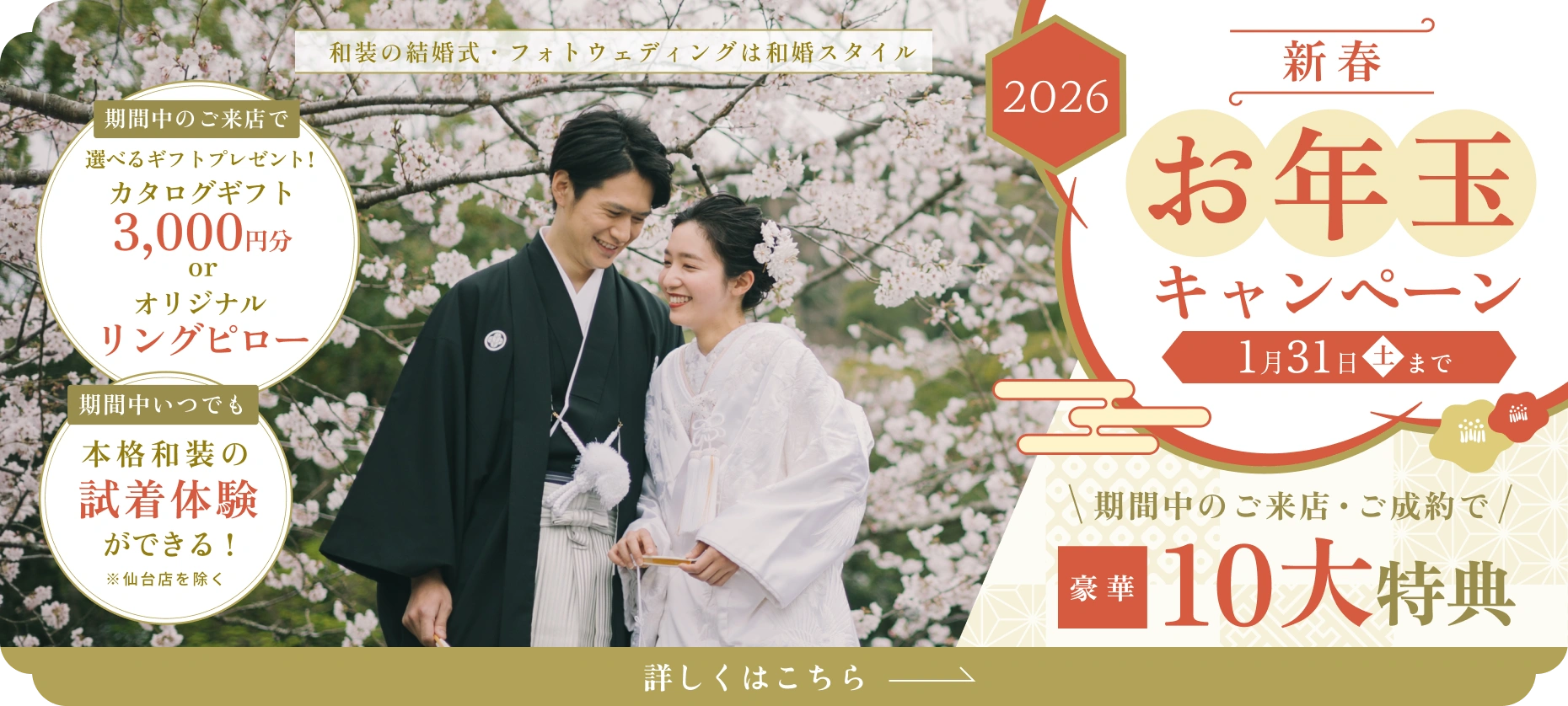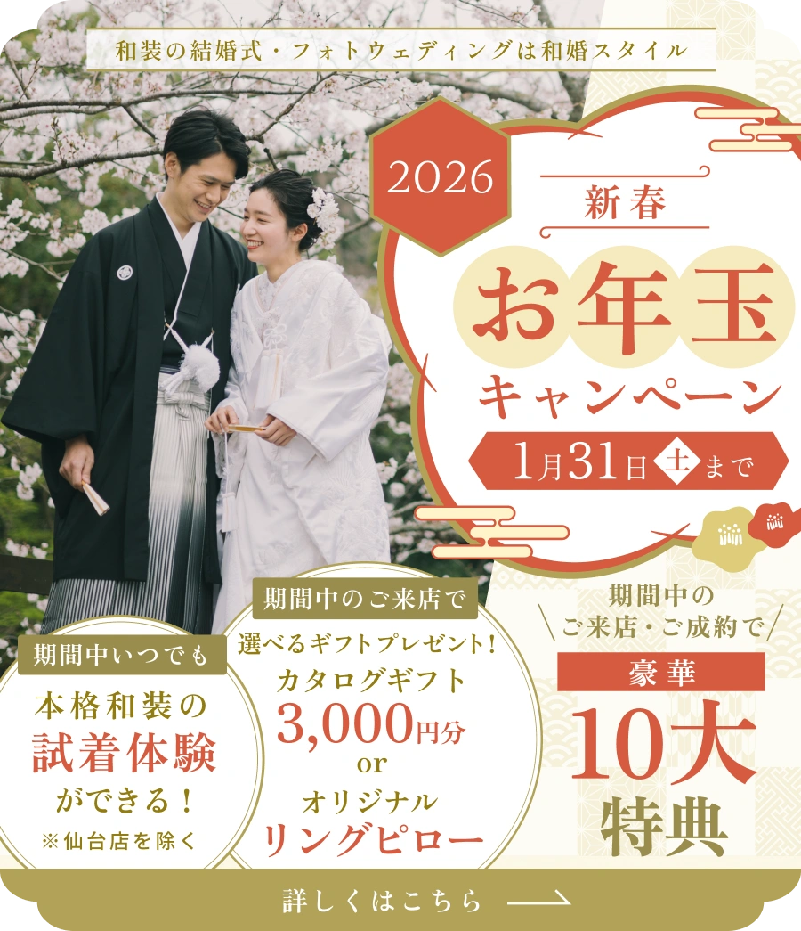 豪華10大特典あり!新春お年玉キャンペーン|和装試着体験&選べる来店特典も♪【1/31まで】