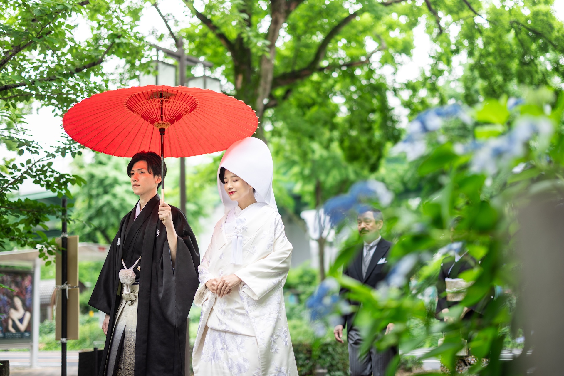 名古屋駅から車で10分の便利な場所に位置しており、遠方からのゲストの方々にも大変喜ばれています。都心にありながら落ち着いた雰囲気を持つ緑豊かな境内は、神聖な挙式にふさわしい空間となっています。