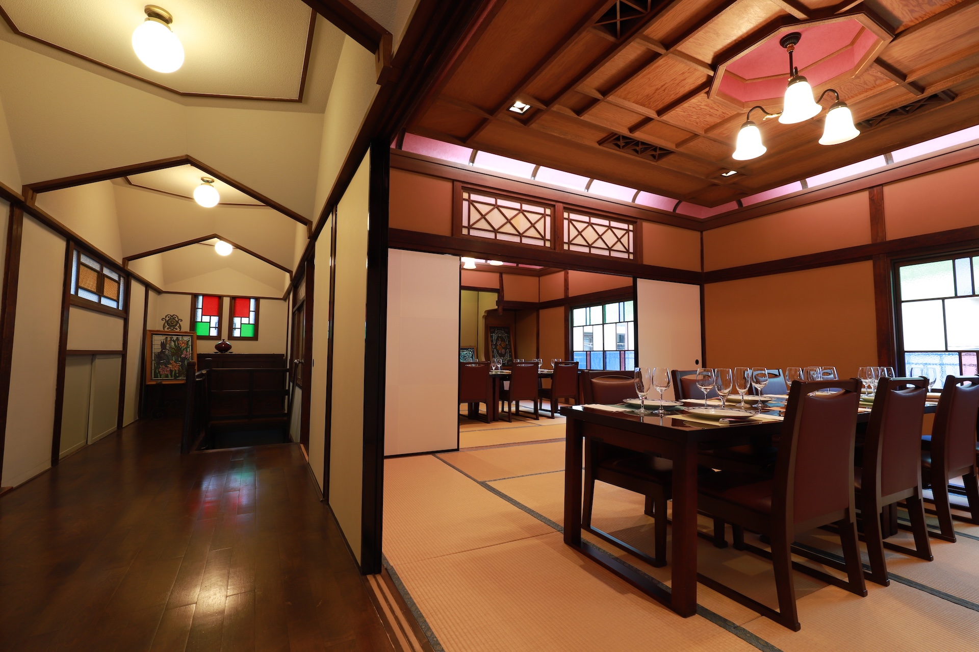 平成15年に現代に残る貴重な洋館として国登録有形文化財に登録されています。 歴史ある懐かしの情緒の中で思い出のひとときをお楽しみいただけます。
